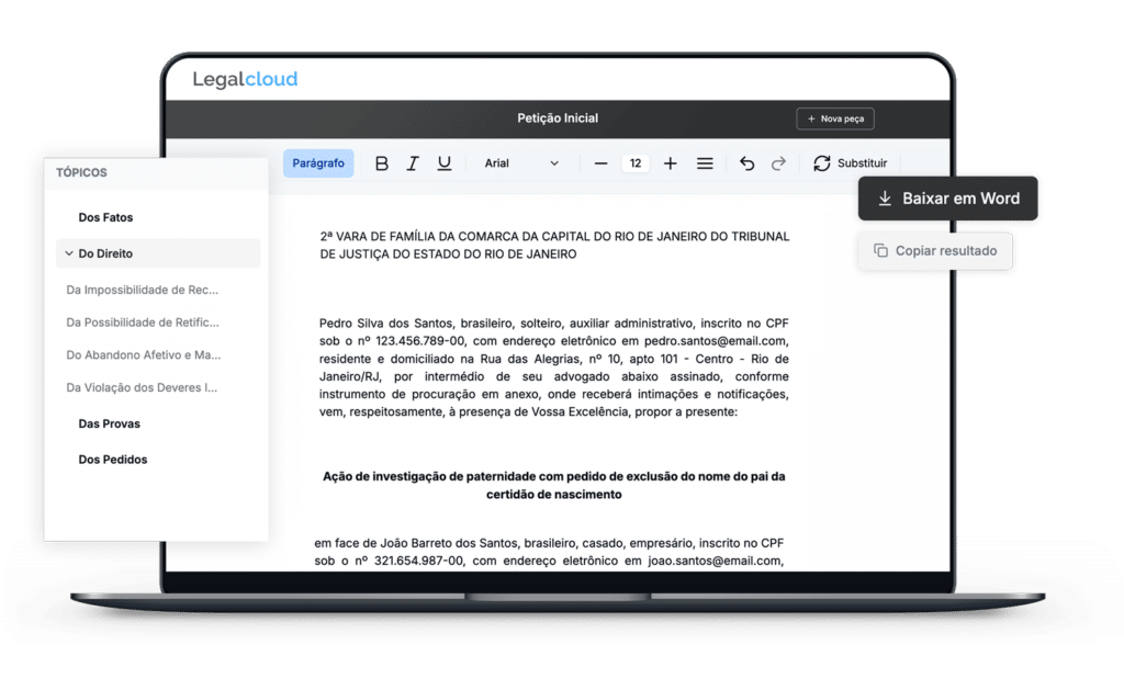 Dessa forma, o advogado recebe um documento claro, bem estruturado e alinhado às exigências formais do processo, pronto para revisão e ajustes estratégicos.